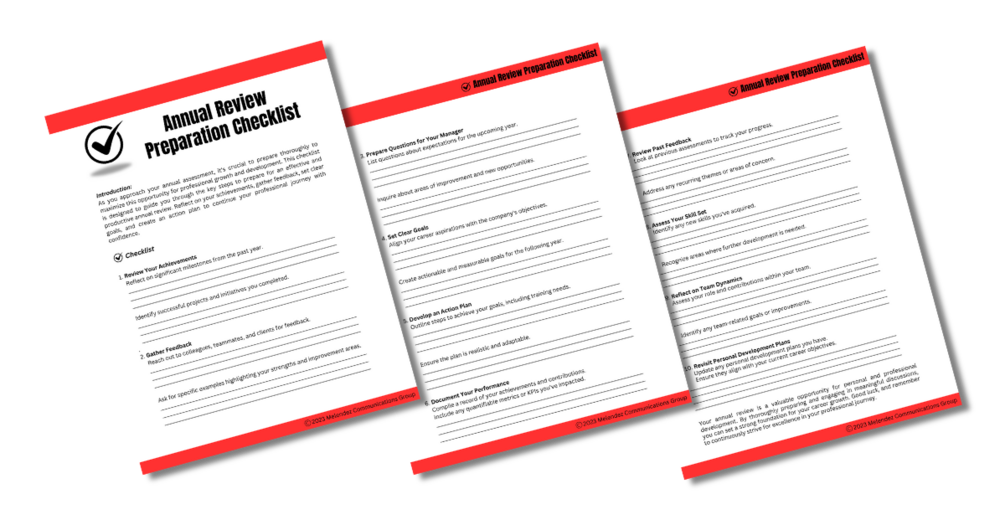 Maximize your annual review with our essential checklist! Tailored to drive growth and success, this guide simplifies preparation with 10 key steps. From reflecting on achievements to setting clear goals, it's your perfect tool for professional development. Download now and turn your annual review into a stepping stone for career excellence!