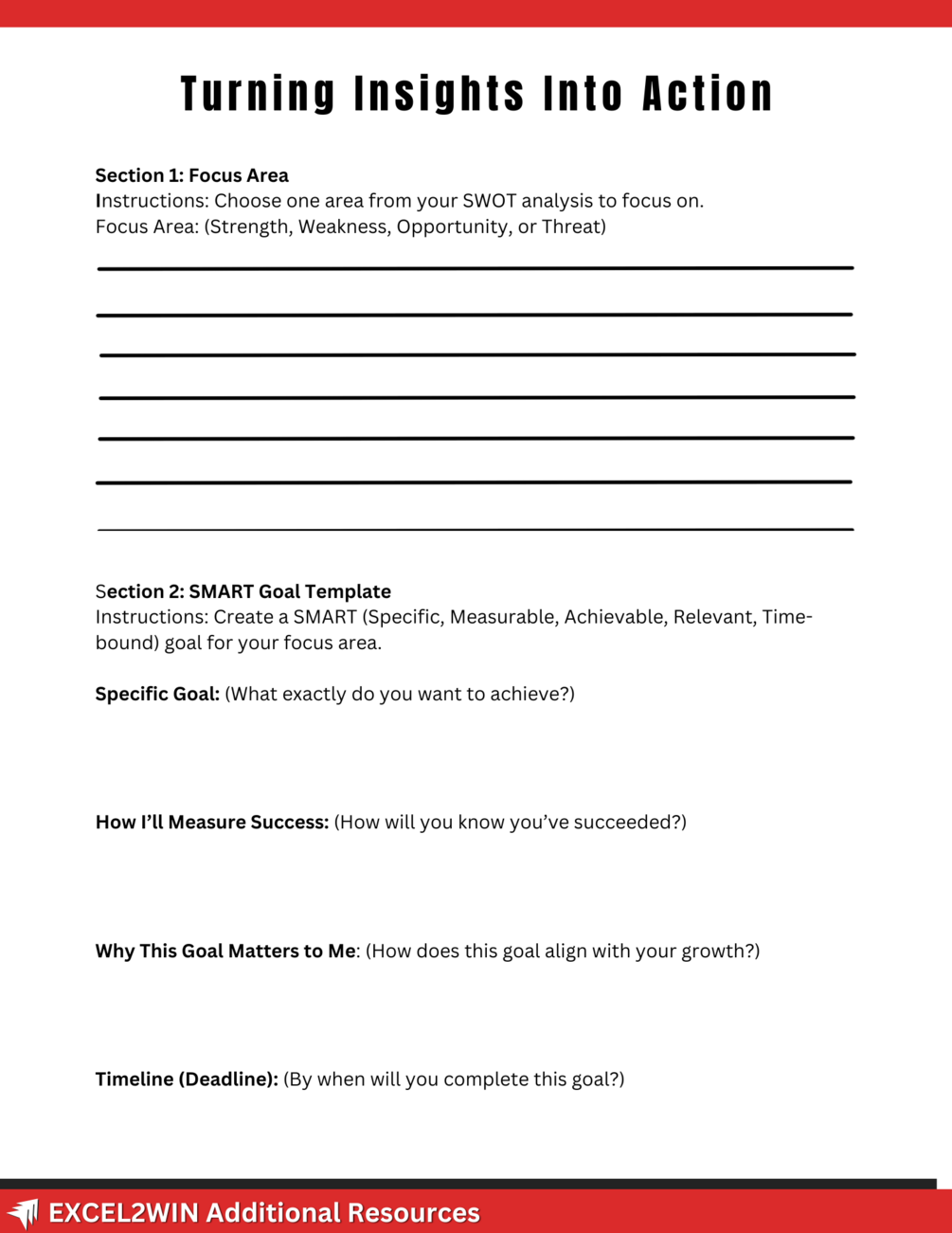 Unlock your full potential with the Reflect and Rise Workbook, a powerful self-reflection tool designed to help you identify your strengths, overcome challenges, and turn insights into action. This easy-to-use, three-page guide features thought-provoking prompts, a personal SWOT analysis, and a step-by-step action plan to fuel your personal and professional growth. Start reflecting today and rise to new levels of success!